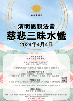 法會時間:2024年4月4日(星期四) 地點:香港九龍新蒲崗八達街9號 宏基中心二期2402室